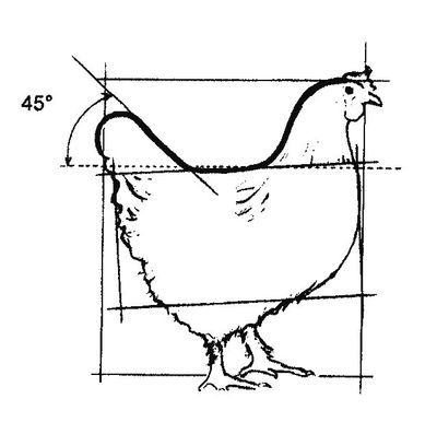 NECK: Moderately long and full, arched. Hackle abundant, flowing well over the shoulders.